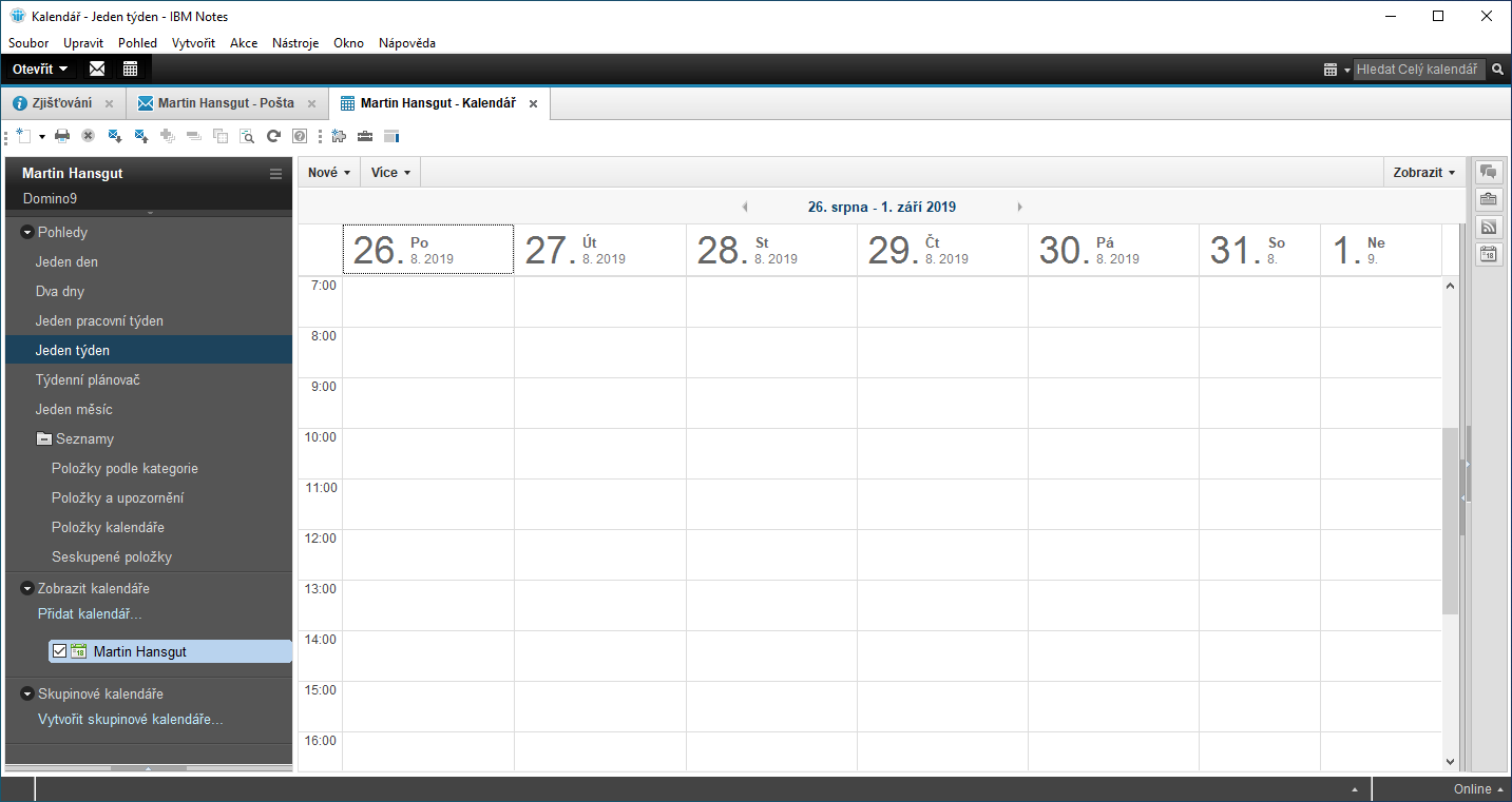 V IBM Notes kalendáři je možné se přepínat mezi několika způsoby zobrazení kalendáře, filtrování a informací.